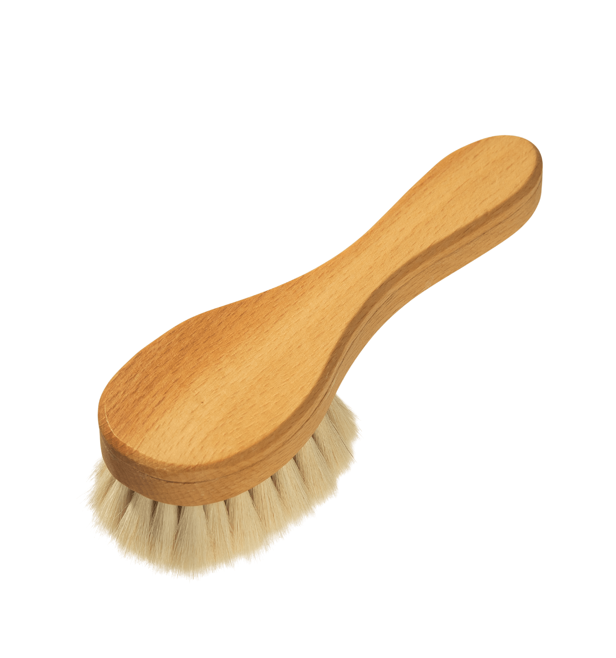Handgemachte Bürste mit weichem Ziegenhaar. Zur Pflege und Massage von zarter Babyhaut.
