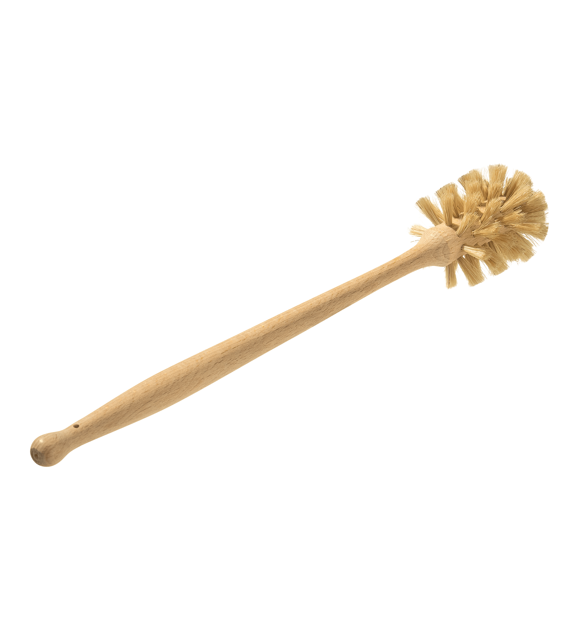Flaschenbürste aus Holz, mit Roßhaar besetzt. Geeignet für alle Flaschen mit einer Öffnung von mindestens 4 cm Durchmesser.